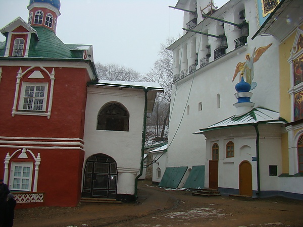 Перестроена в 1870 году в русском стиле из бывшей монастырской трапезной палаты, построенной в 1541 году и примыкавшей с запада к Благовещенской церкви[38]. Предполагается, что переделка не коснулась несущих конструкций и в целом под поздним декором сохранились стены здания XVI века. В подклете первоначально располагались монастырские «службы» — хлебня, мукосейня, казна (для которой впоследствии было выстроено отдельное здание ризницы), погреб «капустной»; сейчас его занимают помещения читального зала и овощехранилища[39].