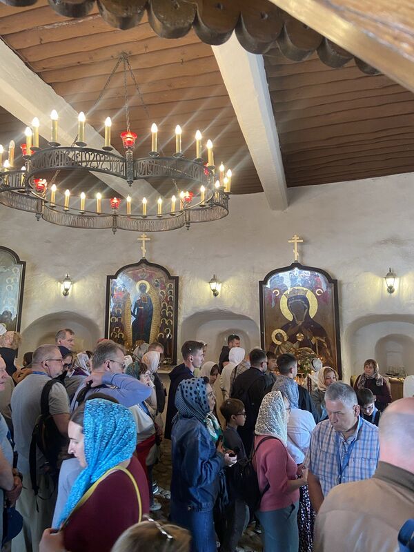 Чудотворная Псково-Печерская икона «Умиление» была помещена у правого клироса храма[37].