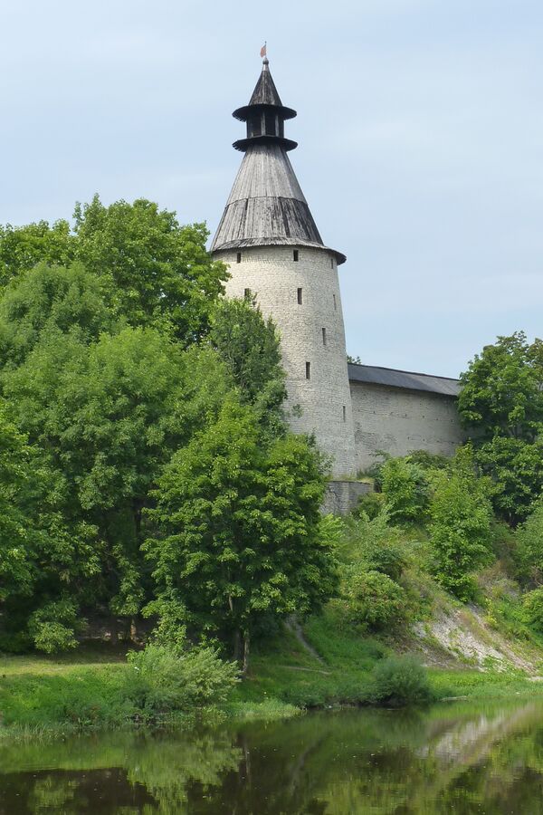 В 1500 году в устье Псковы, на противоположных её берегах, были построены две башни — Плоская и Высокая (Воскресенская). Несколько позднее прямо между ними над водой возвели стену с опускающимися в реку Нижними решётками. В XVII веке эту деревянную стену заменили каменной с арочными проёмами, оснащённые закрывающимися решётками из бревен, кованных железом[3].