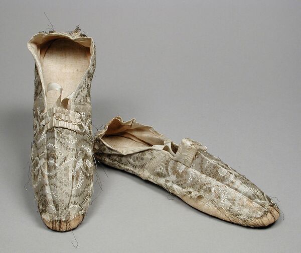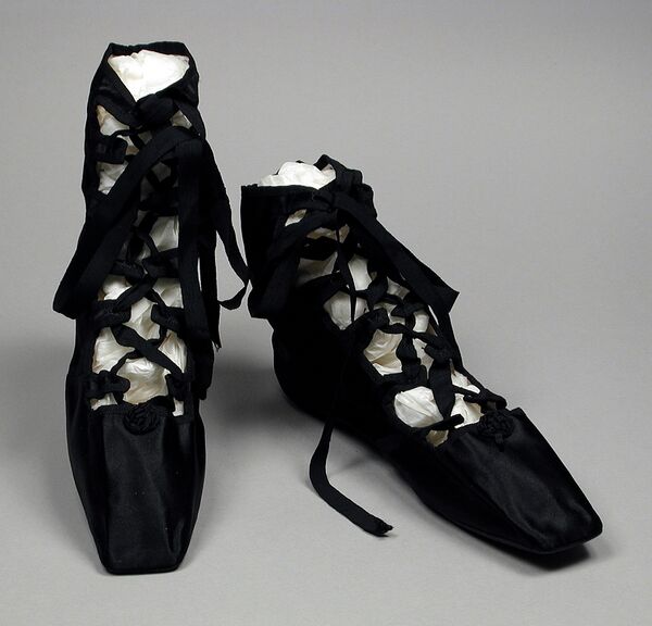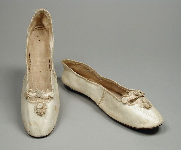Пуанты XIX века сильно схожи по форме с бальными и уличными женскими туфлями конца XVIII — 1-й половины XIX века, когда после революции француженки практически отказались от каблуков, ставших символом опасной принадлежности к аристократии в пользу античной естественности. Как и бальные туфли, их делали из шёлкового атласа, на плоской кожаной подошве с носком прямоугольной формы. «Греческую моду» 1790-х подхватили и танцовщицы: Мария Медина, а вслед за ней и другие артистки, выходили на сцену в хитонах и сандалиях, проповедуя свободу. В то же время такие танцовщицы, как мадмуазель Паризо, продолжали танцевать в узких туфельках на низком каблуке (однако уже без пряжек, бантиков, цветов и прочих украшений времён рококо).