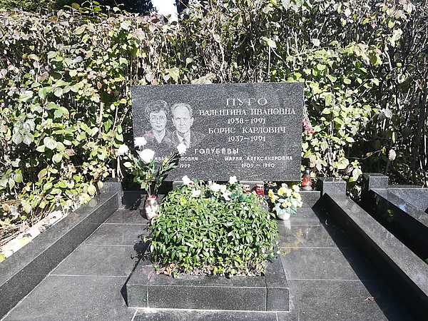 Урны с прахом супругов Пуго захоронены на 1-м участке Троекуровского кладбища в Москве в феврале 1992 года[14][15].