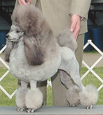 б) На конечностях образуется четкий переход от штанов к бритой части лап. Длина оттянутой шерсти постепенно увеличивается к плечам и бедрам и составляет от 4 до 7 см в зависимости от роста пуделя, но следует избегать излишней пышности. Штаны на задних конечностях должны подчеркивать типичные для пуделя углы сочленений. Любые фантазии, ведущие к отклонению от данных норм стандарта, исключаются. Независимо от того, какая стрижка использована, она ни в коем случае не должна влиять на оценку на выставке. Все представленные пудели, которые стартуют в одном и том же классе, должны описываться и оцениваться вместе.