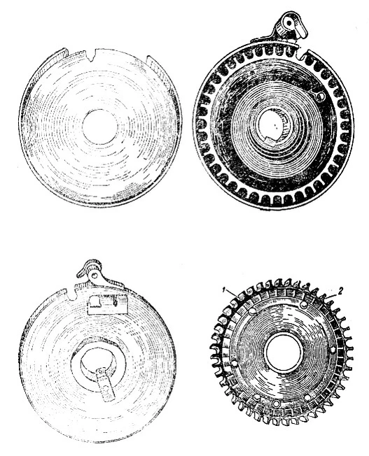 Когда стреляная гильза полностью войдет обратно в своё гнездо, передняя часть затвора выйдет из гнезда диска и дастему возможность повернуться (под действием подающей пружины) на 1/40 часть окружности, то есть на одно гнездо. В этот момент новый очередной патрон станет перед патронником, а гнездо с пустой гильзой окажется передвинутым влево. После этого сжатая движением затвора назад возвратно-боевая пружина вновь пошлет затвор вперед, и цикл автоматики возобновится.