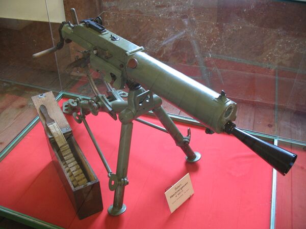 Пулемёт с полусвободным затвором и водяным охлаждением ствола под 8-мм патрон Манлихер.