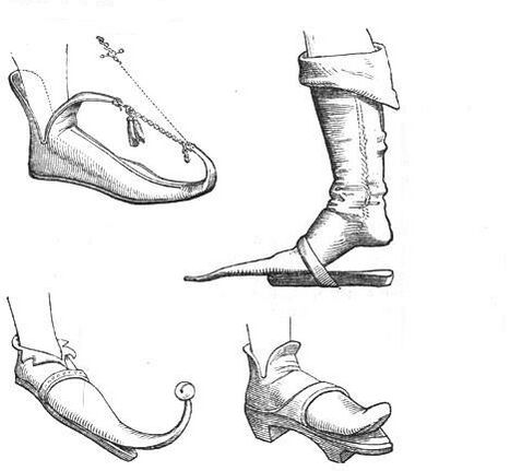 Король Англии Эдуард IV запретил изготовление и ношение пуленов с длиной носков более двух дюймов[3].