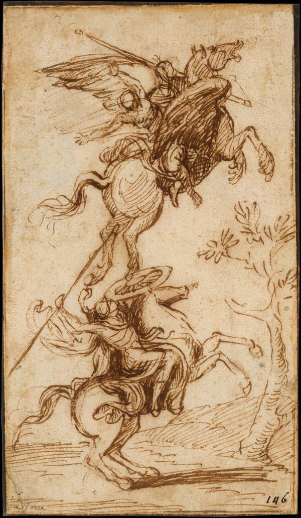 Но прежде всего — о содержании. Оно должно быть благородным, ни одно из его качеств не может быть получено от мастера. Чтобы дать художнику возможность проявить свой ум и мастерство, нужно выбрать сюжет, способный воплощаться в более прекрасной форме. Нужно начинать с композиции, потом переходить к украшению, отделке, красоте грации, живописи, костюму, правдоподобию, проявляя во всём строгое суждение. Эти последние части — от художника и им нельзя научиться. Это — золотая ветвь Вергилия, которую никто не может ни найти, ни сорвать, если его не приведёт к ней судьба[154].