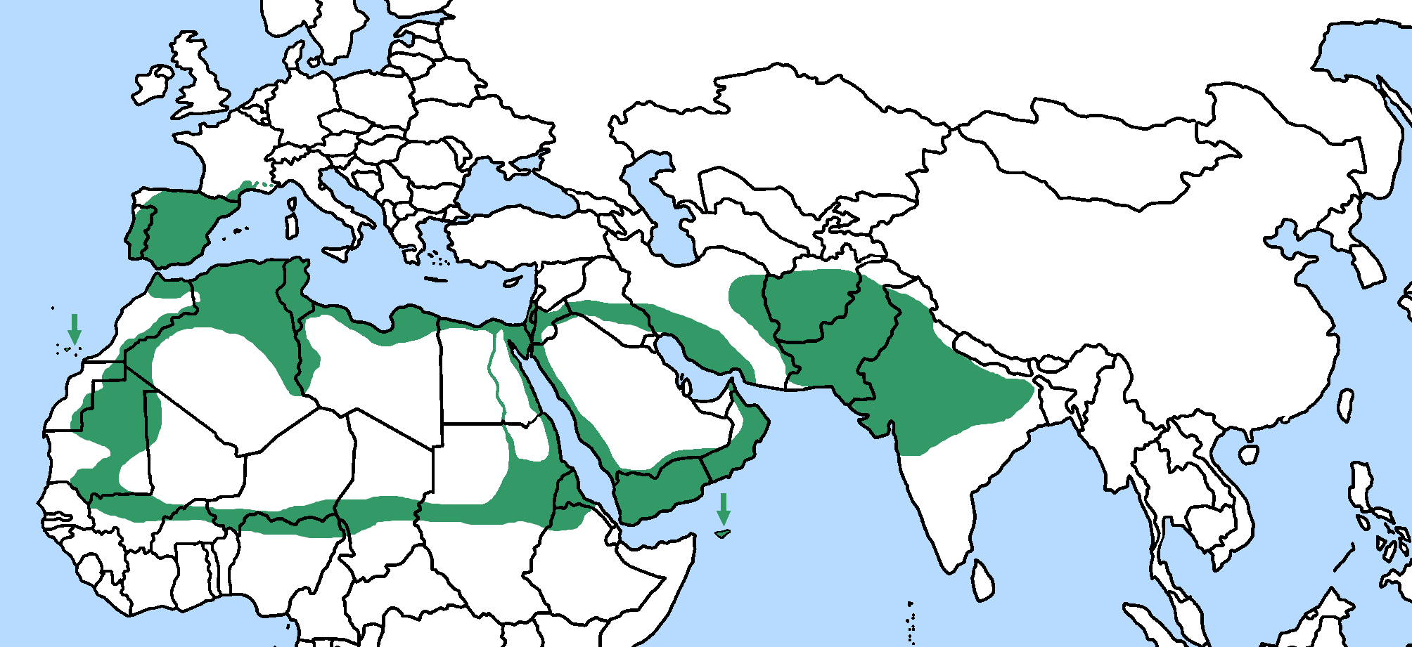 - Южнее и восточнее L. m. algeriensis распространён другой северо-африканский подвид L. m. elegans. Он обитает в оазисах северной и центральной Сахары в северо-восточной Мавритании, северо-западном Мали, южном Тунисе, средней и южной Ливии, Египте, юго-западном Израиле, северо-восточном Судане, возможно на северо-востоке Нигера[10].