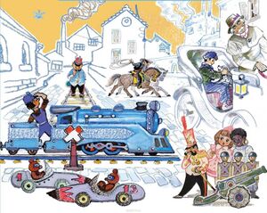- Машинист, Начальник Поезда и Начальник Станции — игрушечные железнодорожники поезда «Голубая стрела».