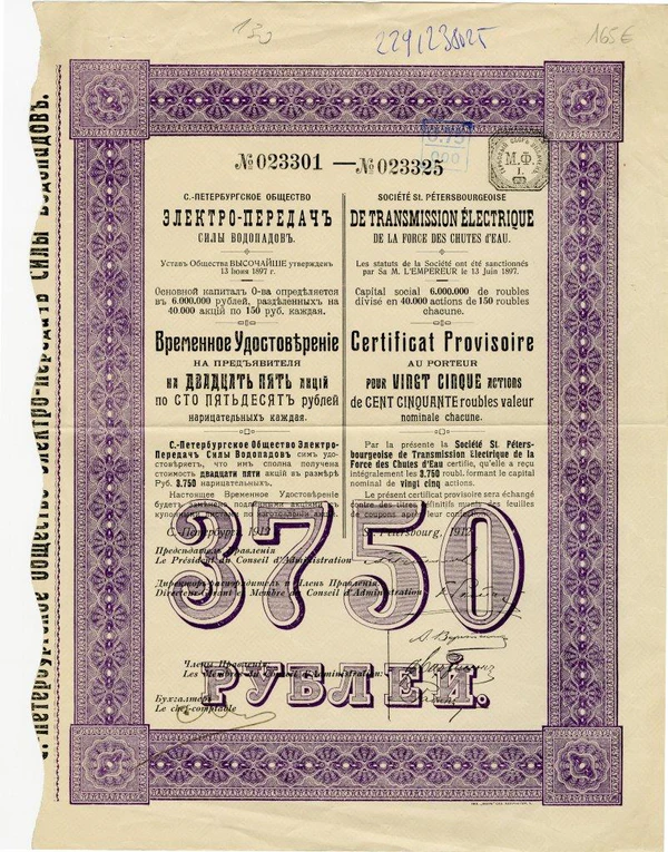 - Санкт-Петербургского Общества электропередач силы водопадов