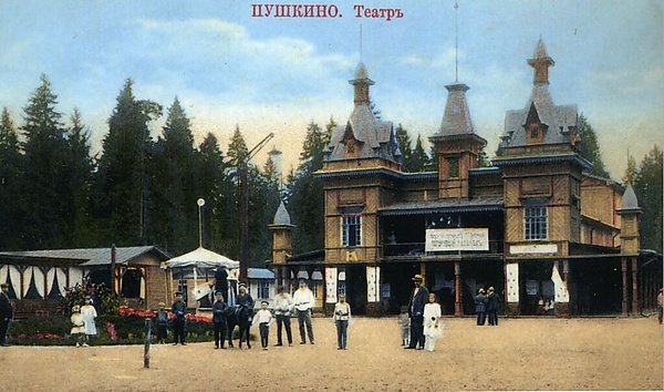 В 1880 году недалеко от станции был разбит общественный парк, который стал излюбленным местом отдыха пушкинских дачников. Центром культурной жизни дачного поселка стал построенный в этом же году, в центре парка, летний театр (сгорел в 1894 году). В 1896 году на средства страхового общества «Якорь» в парке был выстроен новый летний театр (архитектор А. Н. Кнабе), сгоревший 8 августа 1993 года[52]. Пушкино занимает особое место в истории театрального искусства. На рубеже XIX—XX века здесь жили и творили всемирно известные актёры, режиссёры и драматурги: К. С. Станиславский и В. И. Немирович-Данченко проводили на пушкинском дачном участке Архиповых первые репетиции будущего Московского Художественного театра[53], их ученик Всеволод Эмильевич Мейерхольд оттачивал принципы преобразования театрального реализма в ходе летних репетиций «Театра-студии» в Мамонтовке[54], создатель особой теории театральности Николай Николаевич Евреинов, впервые познакомившись с театром в Пушкино, написал здесь свои первые произведения[55], а основоположник грузинского театра Котэ Марджанишвили жил здесь во время работы над постановкой «Гамлета» в МХТ[56].