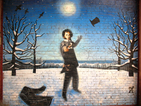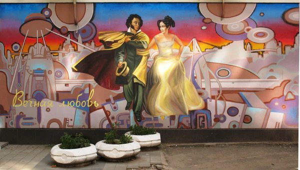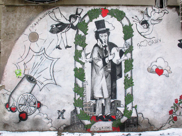 Александр Сергеевич Пушкин пользуется любовью харьковчан, которые регулярно рисуют его на граффити на улице его имени.