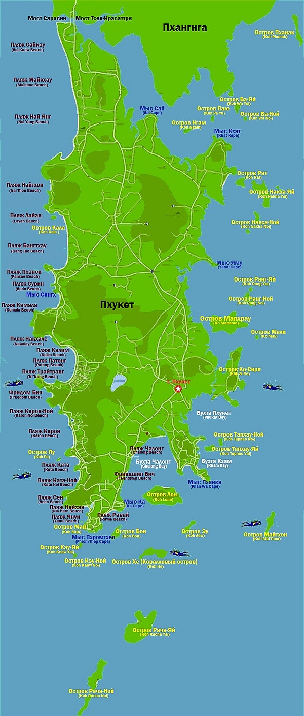 Пхуке́т (тайск. ภูเก็ต; МФА: pʰuːkèt) - одна из южных провинций (чангва́т) Королевства Таиланд. В европейских источниках и навигационных картах упоминался как Тала́нг (тайск. ถลาง), Джанк Сейлон (англ. Junk Ceylon) или Джен Сайлен (англ. Jan Sylan)[2] . Название происходит от искажённого малайского tanjung Salang, буквально мыс Саланг[3]. С ним (по часовой стрелке, начиная с севера) соседствуют провинции Пхангнга́ и Краби́. Поскольку Пхукет — это ещё и одноимённый остров, он имеет с ним сухопутную границу.