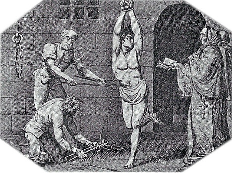В Средние века широкое применение пыток было связано с розыскной формой уголовного процесса. Пытки чаще всего использовались католической Инквизицией[4], но также были распространены и среди радикальных течений протестантизма; различным методам пыток уделено много внимания в трактатах по уголовному праву известного немецкого юриста времён Средневековья Бенедикта Карпцова младшего.