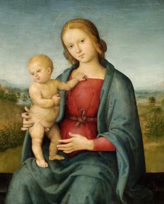 Пьетро Перуджино одним из первых вместе с молодыми флорентийскими художниками осваивал заимствованную у фламандцев технику масляной живописи, которая ещё была неизвестна в Умбрии. «Простота, композиционная ясность его задумчивых Мадонн на фоне такого же ясного умбрийского пейзажа» (она была заимствована у Перуджино Рафаэлем) предваряют классицизм Высокого Возрождения в Италии. Стиль Перуджино это «полное спокойствие, тихие линии, благородная архитектура с широким видом вдаль… Картины Перуджино несут в себе особую мелодичность, такую притягательную накануне классического искусства. Рассматривая картины Рафаэля, становится ясно, насколько этот художник», по определению Г. Вёльфлина, «облегчил путь Рафаэлю». Следует добавить, что именно Перуджино нашёл тот идеализированный, нежный и трогательный лик Мадонны, который затем до бесконечности варьировал Рафаэль[8].