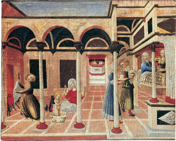 Пьетро ди Джованни д’Амброджо принадлежит к наиболее активным и важным сиенским художникам первой половины XV века. Даты его рождения и смерти не известны, в документах он упоминается с 1410 по 1449 год, а число его работ дошедших до наших дней невелико. Художественному мастерству Пьетро по всей вероятности обучался, работая у Сассетты, во всяком случае, практически во всех произведениях художника видно влияние этого известного сиенского мастера. В 1428 году Пьетро ди Джованни становится членом гильдии сиенских художников. Пик его творчества приходится на 1430—1440-е годы, именно к этому времени относятся сохранившиеся целиком алтари, которые приписывают Пьетро — «Рождество со святыми Августином и Гальгано» (Ашано, Музей религиозного искусства), «Вознесение Марии со святыми Стефаном и Сигизмундом» (Сиена, Пинакотека) и «Мадонна с младенцем и святыми Себастьяном и Фабианом» (135х159 см; Церковь Святых Якова и Христофора монастыря в Омброне).