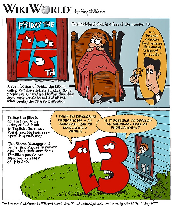 Суеверие принадлежит к современным городским легендам, получившим популярность благодаря СМИ. Также суеверие связано с массовыми арестами представителей ордена тамплиеров (пятница 13 октября 1307 года). Когда пятница выпадает на тринадцатое число месяца, то у некоторых людей, подверженных предрассудкам, может вызывать тревогу. Одним людям кажется, что в пятницу тринадцатого их будут преследовать сплошные неудачи, другие связывают этот день с увеличенной активностью злых духов. Примерно 20 лет назад этому коллективному бессознательному страху американский психолог Дональд Досси придумал специальный термин параскаведекатриафобия. По результатам его исследований, в этот день Америка теряет 900 млн долларов за счёт спада производительности.