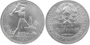 В 1922—1924 годах произошла первая советская денежная реформа. Декрет ЦИК и СНК СССР от 22 февраля 1924 года «О чеканке и выпуске в обращение серебряной и медной монеты советского образца» предусматривал выпуск новых серебряных и медных монет. В обращении появились, в частности, полновесные серебряные рубли и полтинники с датами «1921», «1922» и «1924», «1925», «1926», а также «1927».