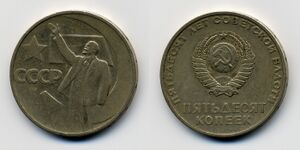 Во время гиперинфляции 1991—1993 годов 50-копеечные монеты, до этого бывшие второй по достоинству монетой в СССР, резко обесценились, став одной из самых мелких разменных монет.