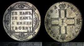 В 1718 году именным указом для серебряных монет от гривенника до рубля была установлена проба в 70 золотников при весовой норме 14 рублей 40 копеек из 1 фунта серебра. Эта норма со временем менялась как в сторону понижения, так и в сторону повышения. В 1885 году утверждённым мнением Государственного Совета стандарты чеканки крупной серебряной монеты были изменены в последней раз: из 1 фунта серебра 900/1000 пробы было предписано чеканить монеты на 20 рублей 4714/25 копейки.