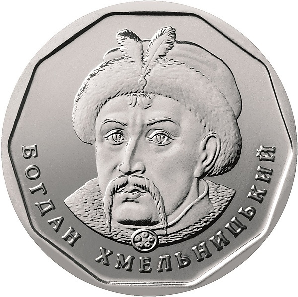 На реверсе монеты, в середине правильного десятиугольника, изображён портрет гетмана Богдана Хмельницкого, символизирующий преемственность монеты по отношению к банкнотам этого же номинала, и его имя на украинском языке, написанное по окружности.[3]