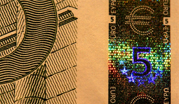 Банкнота пять евро содержит такие элементы защиты, как водяные знаки, невидимые чернила, голограммы и микропечать. В сентябре 2011 года в 17 странах Еврозоны насчитывалось около 1 507 467 000 банкнот с номиналом в пять евро.