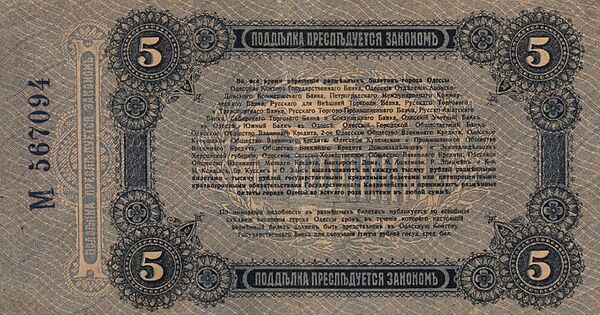Затем, в 1898 году начался серийный выпуск государственных кредитных билетов номиналом в 5 рублей. В 1909 году в обращение вошла новая серия банкнот с обновлённым дизайном.