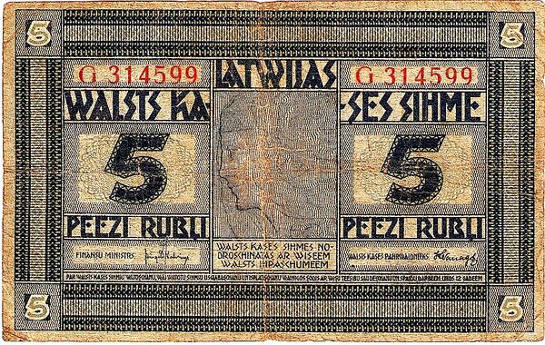 Кроме России, банкноты и монеты номиналом 5 рублей выпускались в Германской империи (ост-рубль), УНР, Латвии (буржуазной и ЛатССР), Донской области, ВСЮР, сепаратистскими правительствами и отдельными городами на территории Российской империи, а в последние годы — в Белоруссии (имеют хождение), Латвии (1919—1922, 1992—1993), Приднестровье (имеют хождение), Таджикистане (1995—2000).