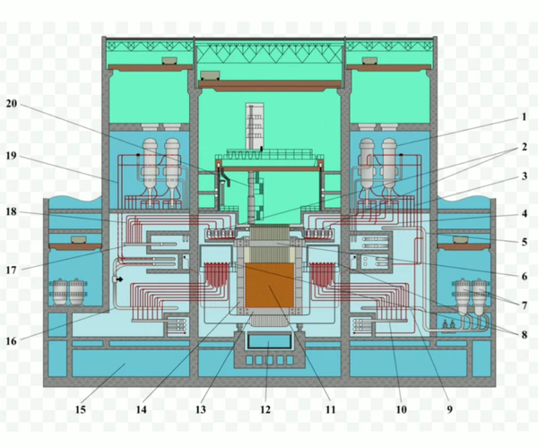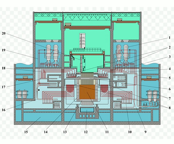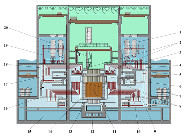 Одним из преимуществ выбранного многопетлевого принципа построения реактора, состоящего из отдельных секций, является относительная независимость друг от друга областей активной зоны, что улучшает условия по регулированию и формированию энергораспределения. Такая компоновка реактора позволяет снижать мощность отдельных секций реактора, а также полностью отключать их для проведения ремонтных работ или перегрузок на работающем реакторе[2].