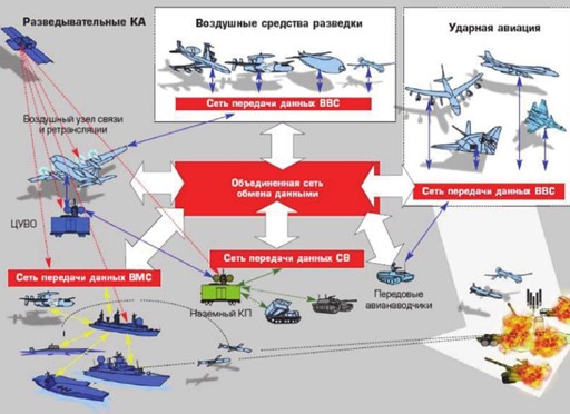Оценивая ход боевых действий на Украине, руководство Вооружённых сил США, используя наработанный научный и практический опыт создания высокоточных систем поражения, а также используя новые подходы к конструированию и использованию таких систем пришло к выводу, что необходимо обеспечить ведение боевых действий в едином информационном пространстве, более взвешенным взаимодействием сил разведки с носителями средств поражения. Это должно достигаться согласованными действиями наземных центров управления действиями авиации, командными пунктами, разведывательно-диверсионными групп и передовыми авианаводчиками, за счёт оборудования управляемого оружия, бортовой аппаратуры систем обмена данными. Такая система обмена данными и связи позволяет объединять имеющуюся в наличии авиационную технику и вооружение в разведывательно-ударные системы не только на уровне самолётов-носителей и разведывательных летательных аппаратов, оснащённых аппаратурой спутниковой связи и усовершенствованной системой обмена данными, но и на уровне взаимодействующих между собой средств поражения.