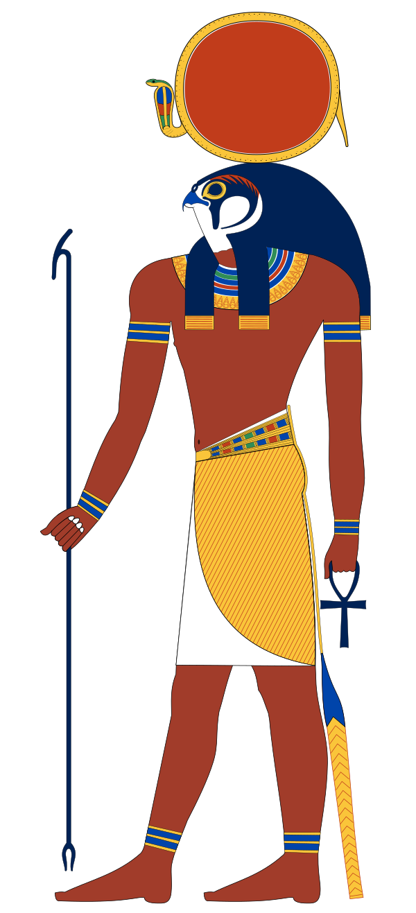 Иногда его передавали в виде страшной змеи, изрыгающей из пасти огонь и уничтожающей врагов, иногда — в образе мужчины с головой барана. Чаще всего — в образе человека с головой сокола, увенчанной диском с уреем, то есть как Ра-Хорахте великого солнечного бога Гелиополя. В культе Ра впоследствии соединились культы всех солнечных божеств. Со времен Древнего царства Ра был наиболее почитаем и уважаем, все фараоны называли себя его сыновьями[3]. Его имя впредь регулярно фигурировало в составе имён фараонов различных династий, включая Сахура (V династия), Менхеперра (тронное имя Тутмоса III, XVIII династия) и многочисленных царей с именем Рамсес (XIX и XX династии), а также частных лиц: например, чати Рехмира («мудрый/знающий, как Ра»).