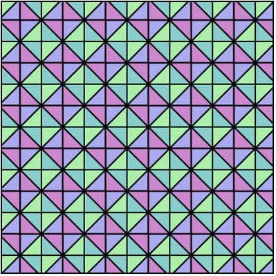 Прямоугольный равнобедренный треугольник является одним из трех треугольников, которые покрывают евклидову плоскость. Только равносторонними треугольниками (треугольник 60-60-60), который является правильным многоугольником, можно правильно покрыть плоскость. Третий треугольник, который неправильно покрывает плоскость, представляет собой прямоугольный треугольник 30-60-90. Эти три треугольника — треугольники Мёбиуса, что означает, что они покрывают плоскость, не перекрываясь, зеркалируя их стороны (см. Треугольная группа).