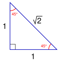стороны соотносятся как 1 : 1 : √2. Боковые стороны являются катетами, основание — гипотенузой.