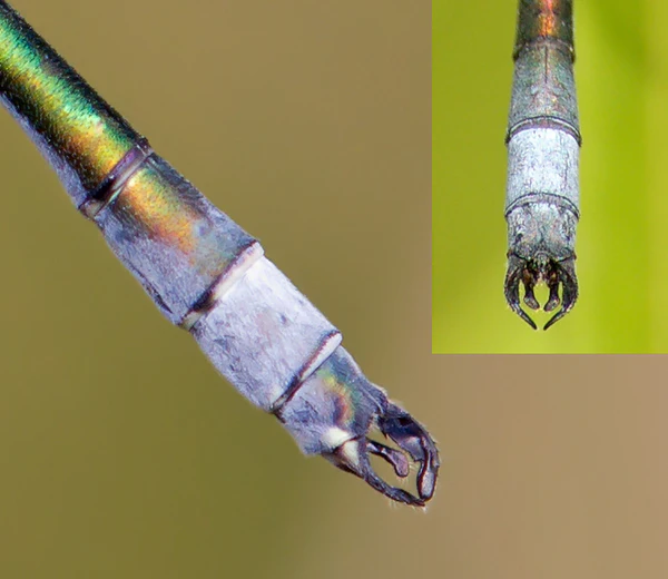 У самок наружное половое отверстие располагается на заднем конце VIII стернита (фактически на границе VIII и IX стернитов). Оно может быть открытым, но чаще всего прикрыто выступом или отростком заднего края стернита, носящего название генитальной пластинки. У всех равнокрылых стрекоз яйцеклад самок имеет вид трубки, образованной желобковидными придатками генитальной пластинки, заострёнными на концах и прижатыми друг к другу своими вогнутыми сторонами. Каждый из придатков образован двумя изогнутыми хитиновыми полосками, называемыми створками яйцеклада. У некоторых групп имеется также вторая и третья пара створок яйцеклада. Эти две пары получили название генитальных клапанов. Створки третьей пары на конце без тонкого генитального отростка (грифелёк)[8].