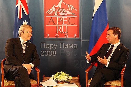 В сентябре 2016 года Кевин Радд выполнял функции модератора дискуссии на пленарном заседании Восточного экономического форума (ВЭФ) во Владивостоке, в котором приняли участие руководители сразу трёх тихоокеанских государств — президент России Владимир Путин, премьер-министр Японии Синдзо Абэ, президент Республики Корея Пак Кын Хе[12].
