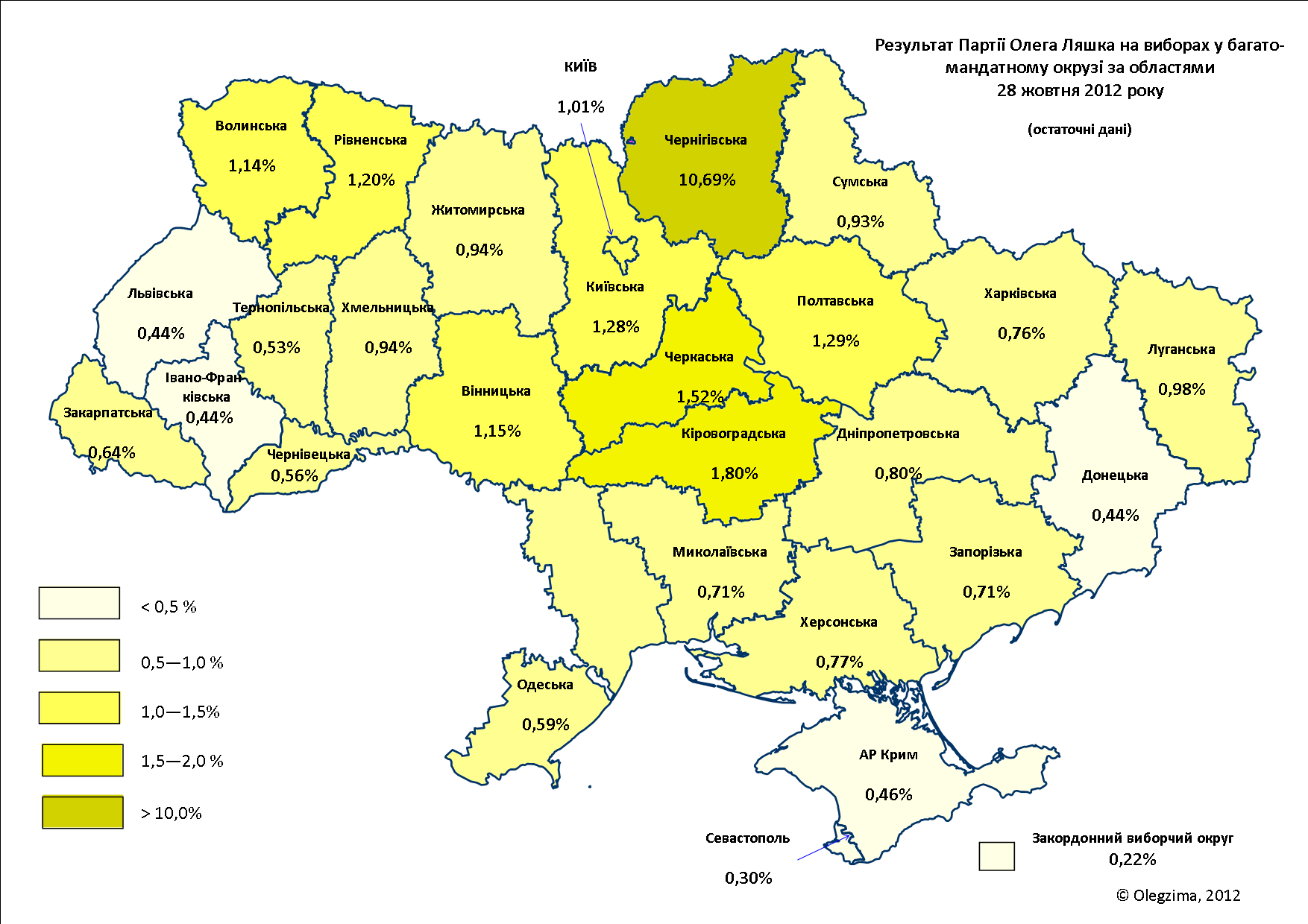 | Поддержка Радикальной партии на парламентских выборах 2012 года |