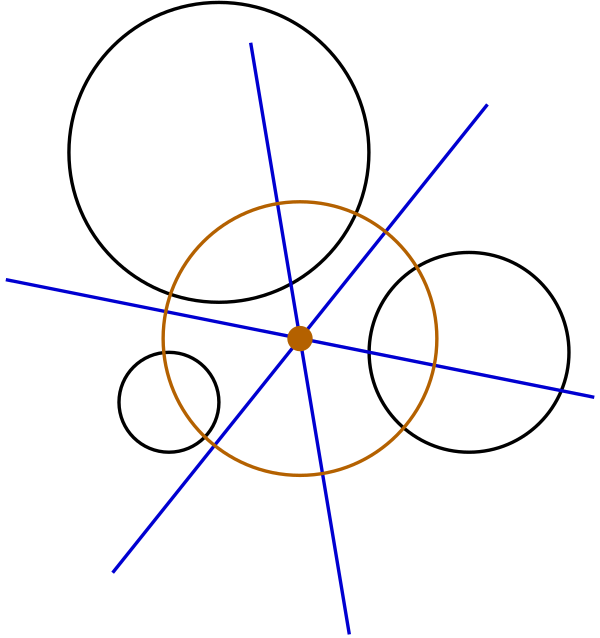 - В диаграмме степени системы окружностей все вершины диаграммы лежат в радикальных центрах троек окружностей.
