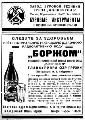 - Ряд курортов, которые лечат посетителей естественной радоновой водой с местных холмов, были основаны в 1906 году и позже в Яхимове, Чешская Республика, и существуют до сих пор.[6] Эти курорты пользовались всемирной известностью, о чем свидетельствует статья в газете New Zealand Thames Star Supplement от 1912 года (в статье использовано австрийское название города — Иоахимсталь).[7] Подобные курорты в настоящее время существуют в Германии, Украине и Австрии,[8][9] а в Германии они покрываются государственным медицинским страхованием.[10]
