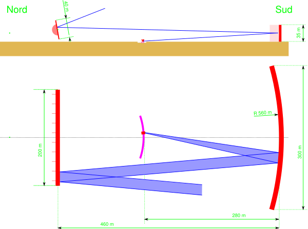 | Неподвижный сферический рефлектор с подвижным облучателем | 500 м | 3 см — 1 м | 2016 | |
