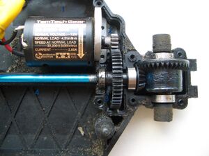 Трансмиссия модели в основном повторяет устройство настоящих автомобилей. Большинство моделей имеют полный привод и два дифференциала на осях. Иногда добавляется третий, межосевой дифференциал.