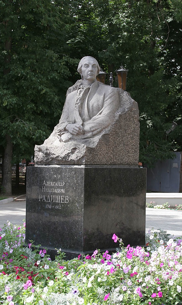 Алекса́ндр Никола́евич Ради́щев (20 [31] августа 1749, Верхнее Аблязово, Пензенский уезд — 12 [24] сентября 1802, Санкт-Петербург)[4] — русский прозаик, поэт, философ, де-факто руководитель Петербургской таможни, участник Комиссии по составлению законов при Александре I.
