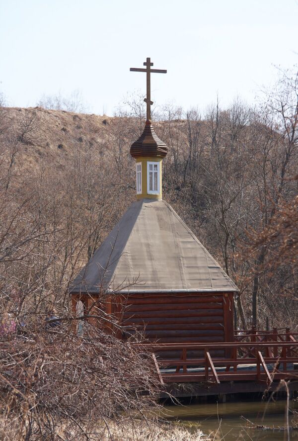 Напротив входа в храм установлен крест, ранее стоявший на могиле святой блаженной старицы Матроны Московской.