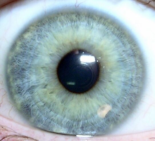 | Синий | Кровеносные сосуды радужной оболочки имеют светлый оттенок
