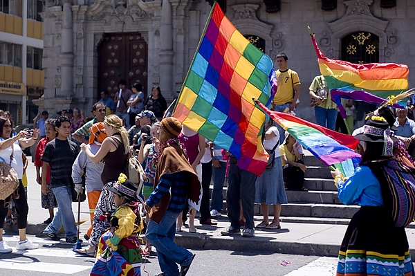 В 1978 г. перуанский город Куско принял семицветный радужный флаг в качестве своего официального флага[27]. Однако в последнее время ведутся дискуссии об изменении главного атрибута города из-за частой путаницы его с «гей-флагом»[2].