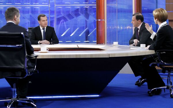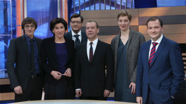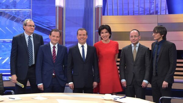 10 декабря 2014 года Председатель Правительства ответил на вопросы телеведущих Ирады Зейналовой («Первый канал»), Сергея Брилёва («Россия-1»), Марианны Максимовской («РЕН ТВ»), Вадима Такменёва (НТВ) и Михаила Зыгаря («Дождь»)[16].