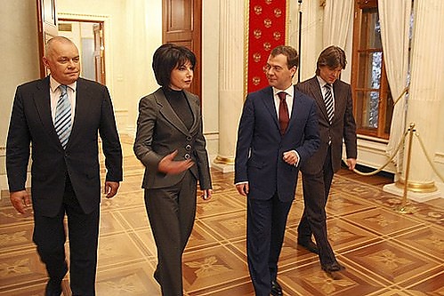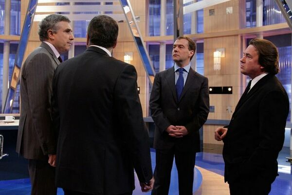 - В течение 2009 года Дмитрий Медведев ежемесячно давал интервью федеральным каналам: «Первому каналу», «России» и «НТВ» (телеканалы менялись каждый месяц по очереди). Они выходили, как правило, по воскресеньям в итоговых информационно-аналитических программах телеканалов. Основной темой всех интервью стала борьба России с последствиями экономического кризиса.
