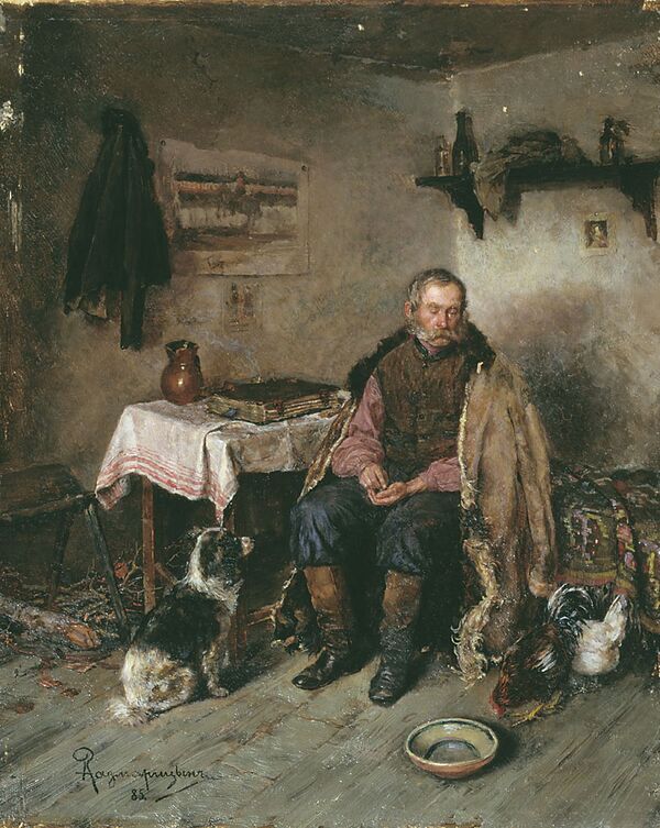 | Кн.[язь] Гедройц очень удачно называет одесского художника «русским Фортуни». Это артист от головы до ног. В каждом мазке его больше таланта, чем в сотне картин иной заграничной знаменитости. Правда, он пишет мало, слишком мало... Одно произведение отнимает у него три — пять лет [...] от так долго возится с какой-нибудь складкою сюртука или паутинкою, пока эта складка и паутинка живьём [не] выступает из рамы. | ||||