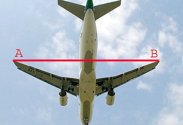 Размах крыла означает расстояние от вершины левой части крыла до вершины правой у искусственных объектов.