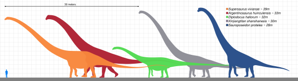 Известны и динозавры бо́льших размеров, но их реконструкции основаны исключительно на фрагментарных окаменелостях. Один из самых крупных известных завропод — аргентинозавр, длиной до 39,7 метров[11].