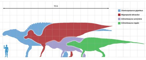 | 2 | Edmontosaurus annectens | 13—15,2 | 13,2 | [25][59][60][61][61] |