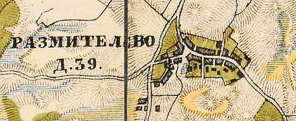 РАЗМИТЕЛЕВА — деревня принадлежит ротмистру Александру Чоглокову, жителей по ревизии 77 м. п., 100 ж. п. (1838 год)[9]